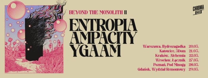 Niespełna dekadę temu polską scenę muzyczną poruszyło wydarzenie noszące miano BEYOND THE MONOLITH. Pora na BEYOND THE MONOLITH II. Już w marcu tego roku Polskę przemierzy trasa polskich zespołów Entropia, Ampacity, Ygaam odwiedzająd sześć miast w Polce. Sprawdź harmonogram!